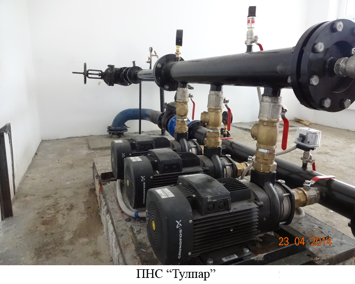 8. «Тұлпар» қысымды көтеретін сорғы станциясында ( «Тұлпар» тұрғын үй кешені, 71 үй маңы). жиілікті түрлендіргіші бар қуаты 5,8 кВт, 3 данадан энергия үнемдейтін сорғы агрегаты, сондай-ақ, салқын су есептеу құралы орнатылды.Металл су құбыры кірмелері пластик түрлеріне ауыстырылды.